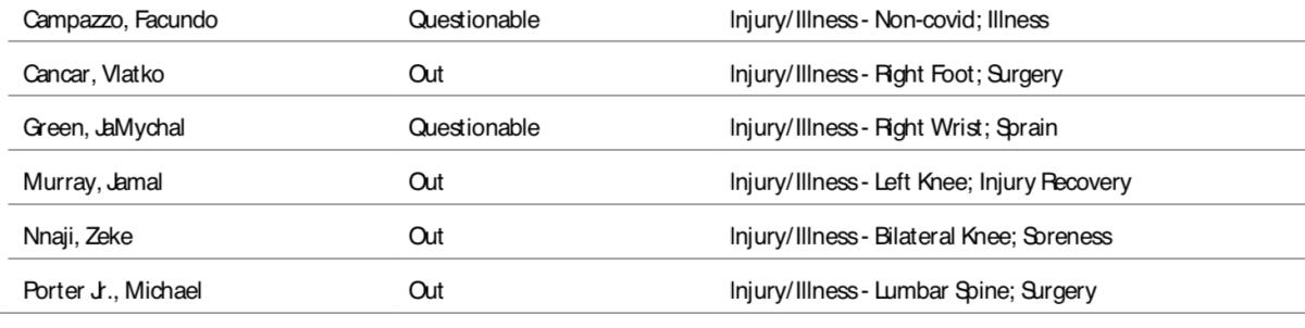 Nuggets injury report